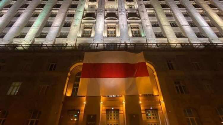 Мэр Киева Виталий Кличко поддержал протестующих в Беларуси оппозиционеров. На здании Киевской городской государственной администрации появился оппозиционный бело-красно белый флаг.