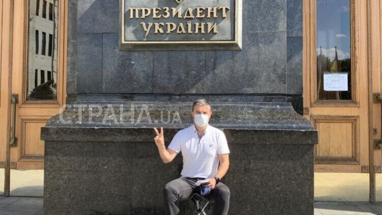Мэр Умани ждет Зеленского под ОП с раскладным стульчиком и спальным мешком. Видео