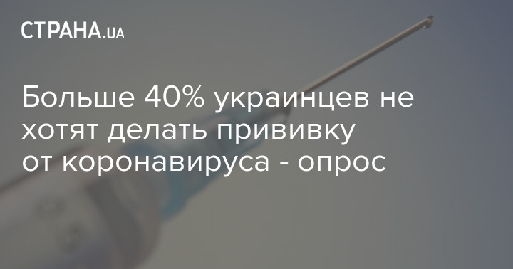 Меньше половины украинцев (47%) согласны сделать себе прививку от коронавируса, одобренную Всемирной организацией здравоохранения.