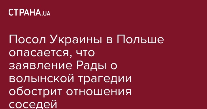 Посол Украины в Польше опасается, что заявление Рады о волынской трагедии обострит отношения соседей
