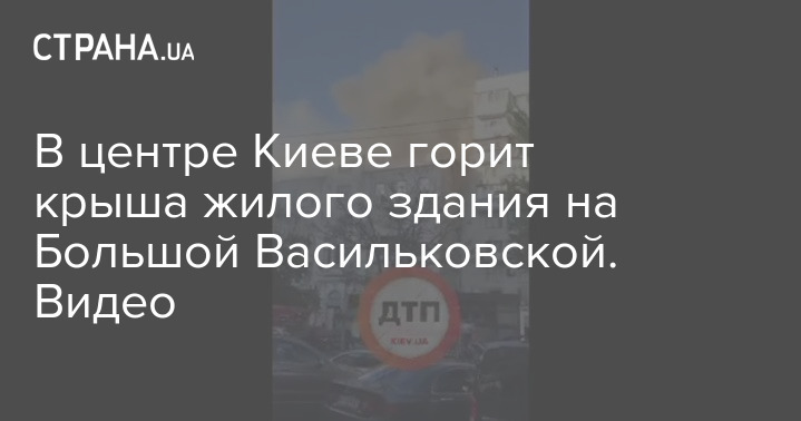Как видно на записи, загорелась крыша жилого дома. Из здания валит густой черный дым.