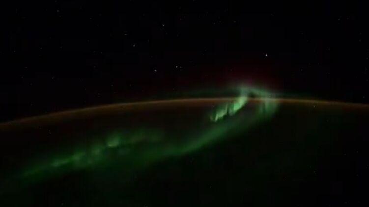 На видео космонавта попало еще полярное сияние над Антарктидой. Скриншот из ролика