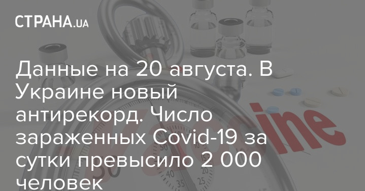 Данные на 20 августа. В Украине новый антирекорд. Число зараженных Covid-19 за сутки превысило 2 000 человек