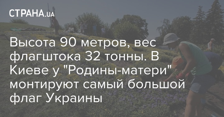На киевских холмах у монумента "Родины-матери" установили флагшток весом 32 тонны и высотой почти 90 метров. В День государственного флага Украины 23 августа здесь будет развиваться самый большой стяг размером 16 на 24 метра, который будет виден из любой точки Киева.