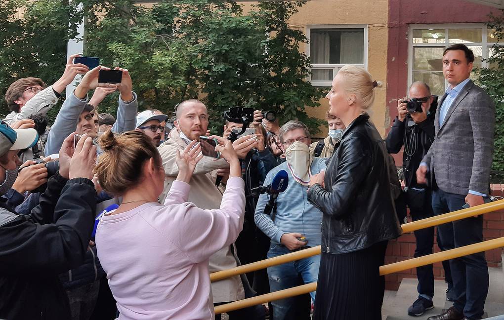 Юлия Навальная и Иван Жданов (справа) перед больницей. Фото: ТАСС
