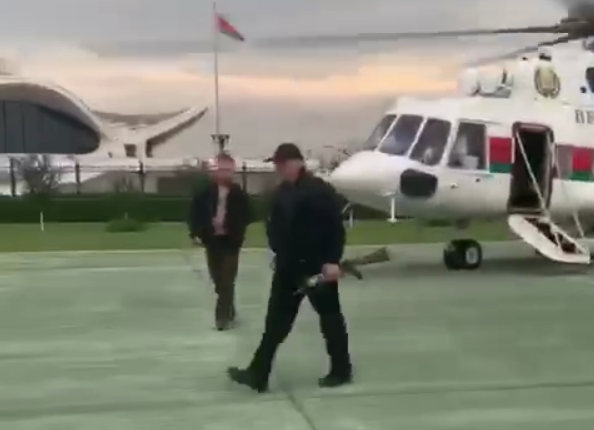 А сегодня, под занавес акций протеста, неофициальный Телеграм-канал администрации президента опубликовал несколько видео, как Лукашенко с оружием и в бронежилете выходит из вертолета, который приземлился у одной из его резиденций - Дворца независимости. Его сопровождает сын Коля - тоже с оружием, в каске и военной "разгрузке".