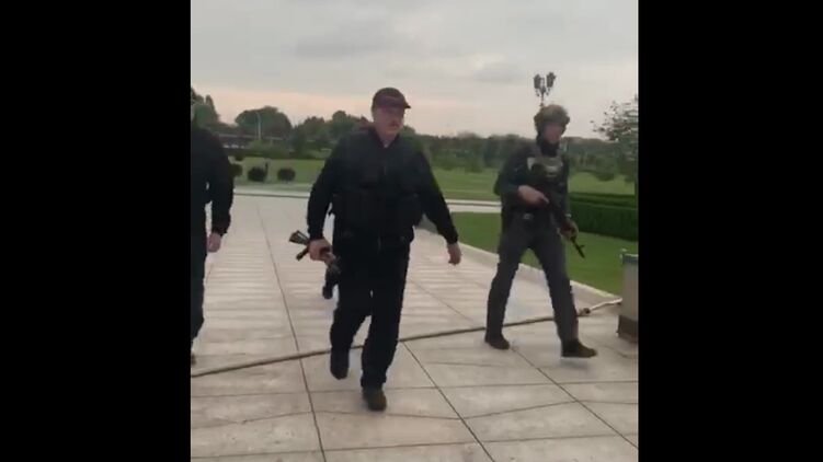 Как видно на записи, Лукашенко выходит из вертолета с автоматом в руках и черном бронежилете. На видео он уточняет: "Там никого не осталось, да?".