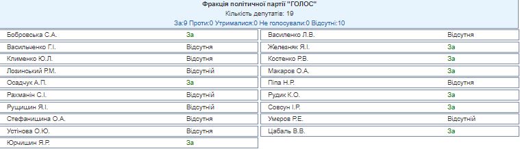 Против проголосовали Кучеренко, Пузийчук, Цимбалюк, Лабунская. Воздержались - Волынец, Власенко, Кабаченко, Немыря, Ивченко, Наливайченко, Николаенко.