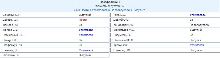 • Воздержались Бужанский, Демченко, Касай, Колев, Лерос, Микиша, Черный, Шевченко.