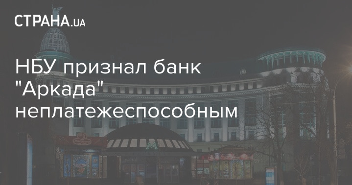 Национальный банк Украины принял постановление, согласно которому киевский банк "Аркада", 6 августа попавший в число проблемных, причисляется к категории неплатежеспособных. Это первая временная администрация в 2020 году.