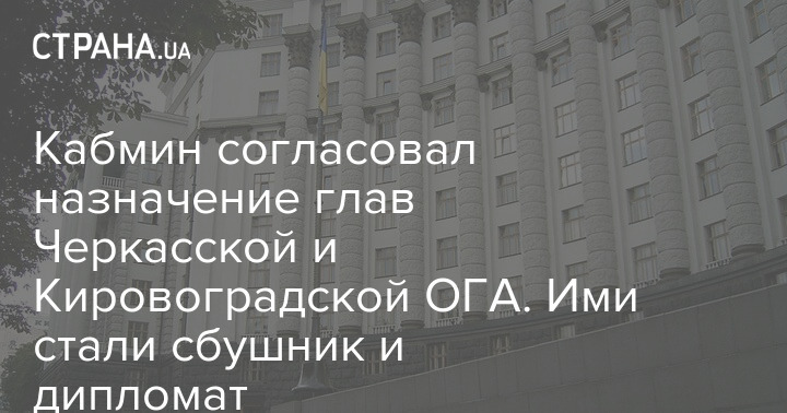 Кабмин согласовал назначение глав Черкасской и Кировоградской ОГА. Ими стали сбушник и дипломат