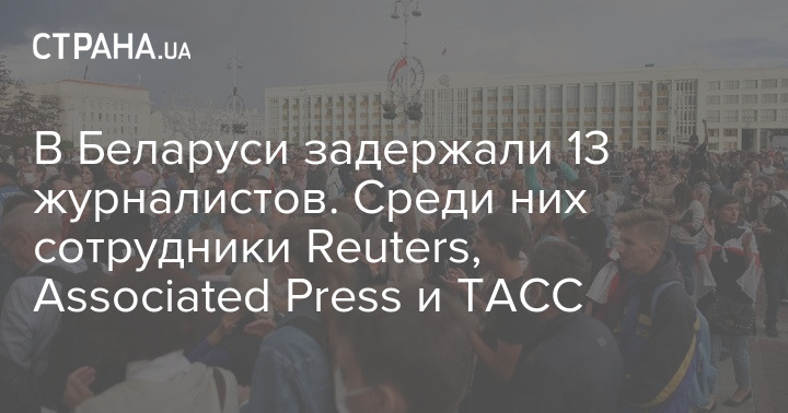 В Минске задержали 13 журналистов, среди которых были сотрудники известных изданий Reuters, Associated Press, ТАСС. Сообщается, что их задержали на площади Свободы для выяснения личностей.