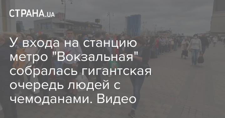 У входа на станцию метро "Вокзальная" собралась гигантская очередь людей с чемоданами. Видео