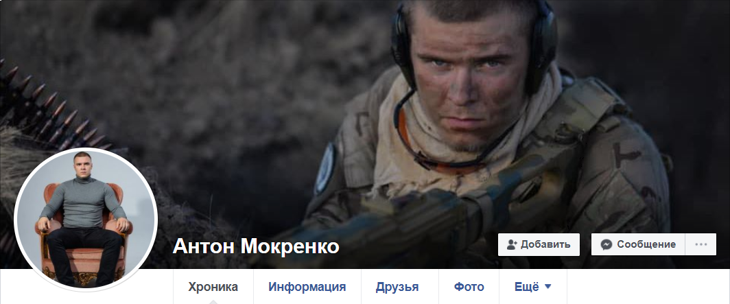Антон Мокренко на Фейсбук-странице чаще публикует фото военной амуниции с оружием. Некоторые снимки "с войны", как фоновое фото в окопе - выглядят постановочными.
