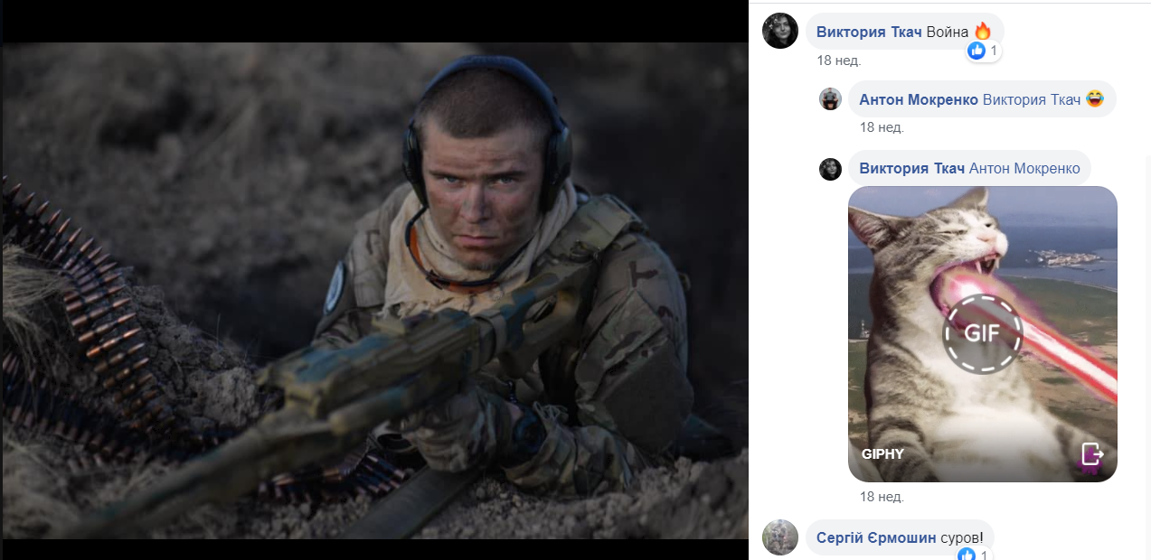 Военный с ником Rembo Uda, который имеет отношение к 5-му отдельному батальону УДА, пишет: "Главное понимать, что только вместе мы можем изменить страну! Это факт. Чем раньше это поймут, тем быстрее мы победим". На это Мокренко пишет: "Согласен".