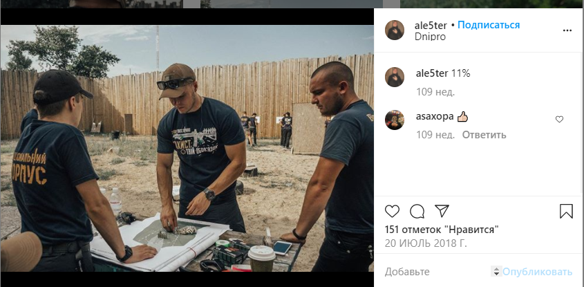 Судя по снимкам в Инстаграме, Мокренко регулярно участвует в мероприятиях "Нацкорпуса".