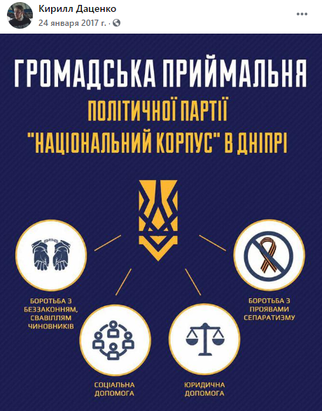 Он тоже член или сторонник "Нацкорпуса", судя по тому что рекламирует мероприятия партии на своем Фейсбуке.