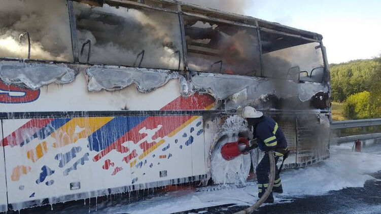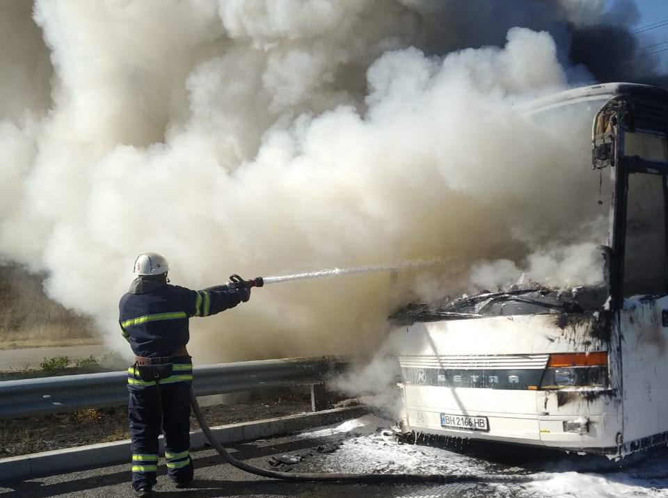 "1 сентября в 15:25 в оперативно-диспетчерскую службу Ставищенского района поступило сообщение о возгорании автобуса "СЕТРА" на трассе Киев - Одесса вблизи села Снежки", - говорится в сообщении.