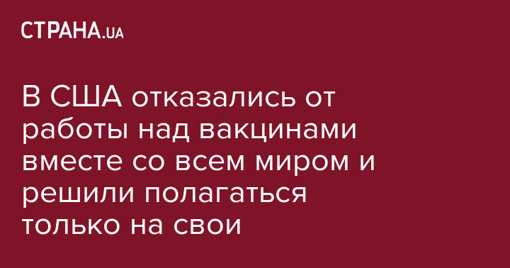В США отказались от работы над вакцинами вместе со всем миром и решили полагаться только на свои