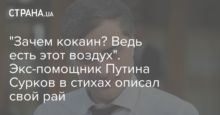 "Зачем кокаин? Ведь есть этот воздух". Экс-помощник Путина Сурков в стихах описал свой рай