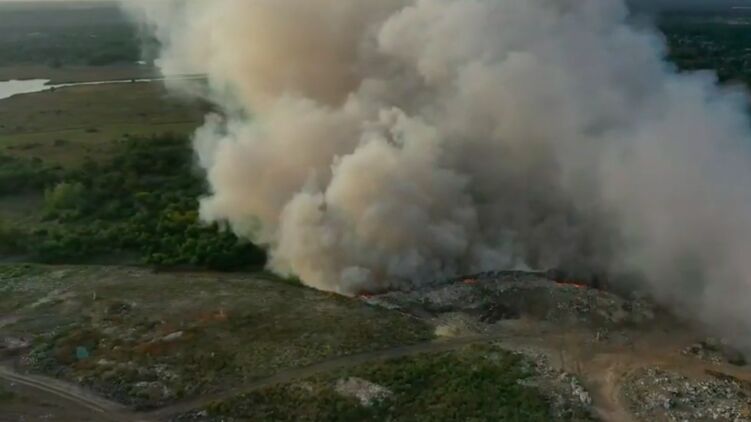 На Полтавской городской свалке бушует пожар. Фото: ГСЧС