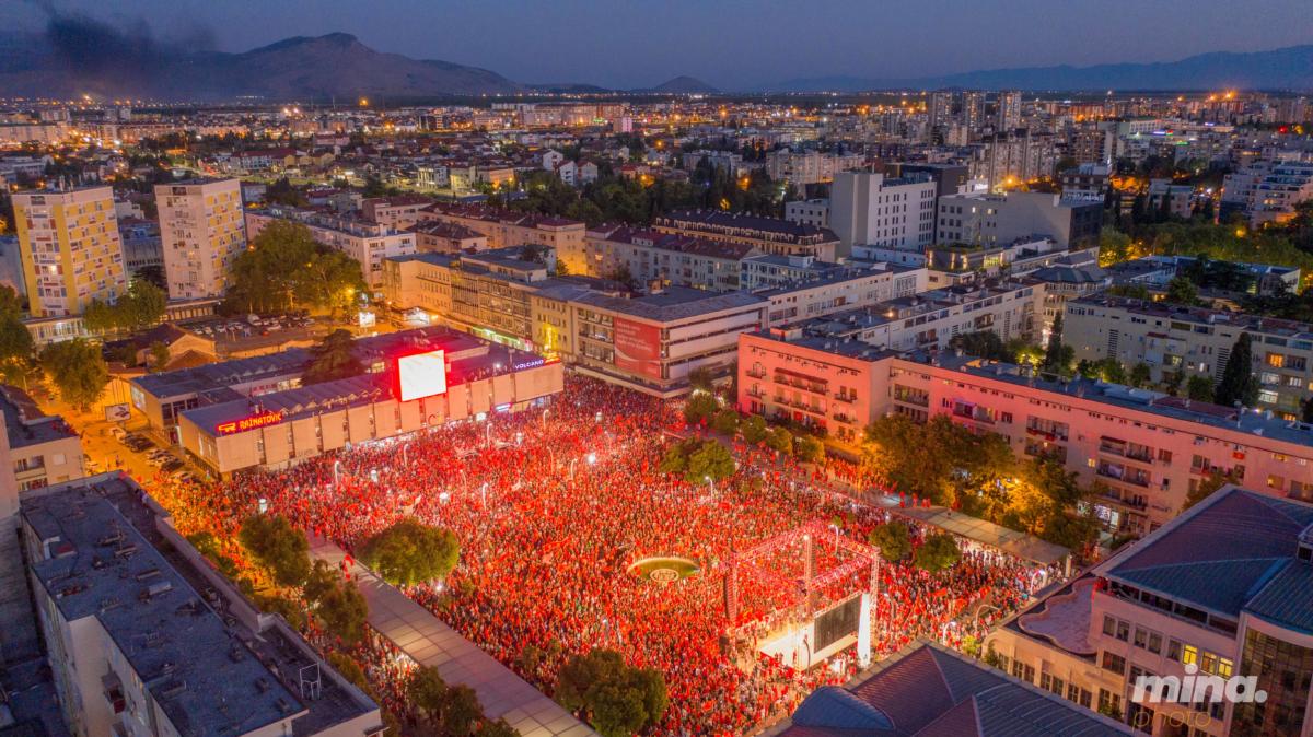 На площади Независимости в Подгорице собрались люди с национальными флагами. К ним обратились активисты, призвавшие бороться за независимую Черногорию". Собравшиеся скандировали лозунги "Вива Черногория!" и "Это не Сербия!"