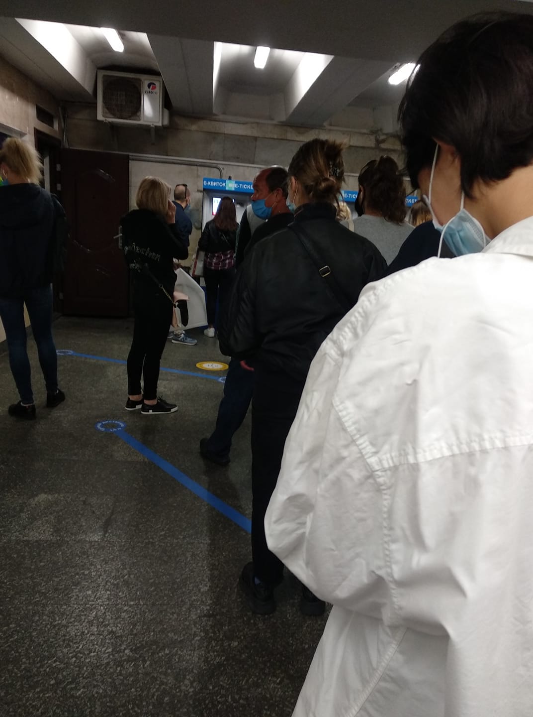 Невозможно купить разовый QR-билет на кассе, а очереди в автоматы Kyiv Smart Card на станции метро "Дарница" растянулись на всю улицу.