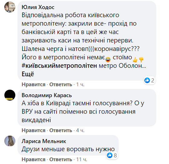 Тем временем КП "Киевский метрополитен" на своей странице в Фейсбук не дает объяснения происходящему. Последняя запись - репост 12-часовой давности сообщения мэра Киева Виталия Кличко, в котором сказано, что Киевсовет не принял решение о дополнительном финансировании коммунальных предприятий-перевозчиков - для выплаты заработных плат работникам метрополитена и "Киевпастранса" и работники транспортной сферы рискуют остаться без зарплат.