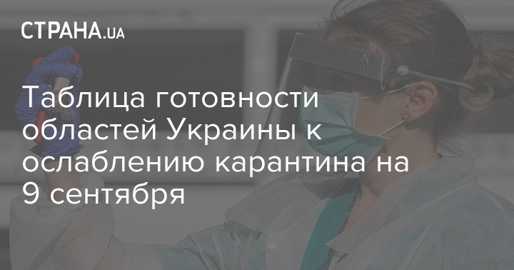 Таблица готовности областей Украины к ослаблению карантина на 9 сентября