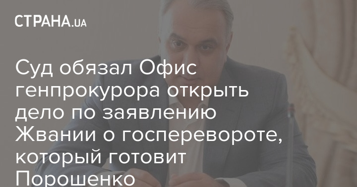 Печерский суд Киева обязал Офис генпрокурора возбудить дело о подготовке государственного переворота, о котором в одном из своих видеообращений рассказывал экс-депутат и бывший соратник Порошенко Давид Жвания. Также был установлен судебный контроль за исполнением данного решения.