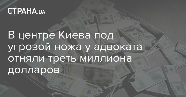 В Киеве неизвестные под угрозой ножа отобрали у адвоката портфель с 350 000 долларов. Инцидент произошел в четверг, 10 сентября, около 15:00 в районе Арки Дружбы Народов. Об этом корреспонденту "Страны" рассказал источник в МВД.