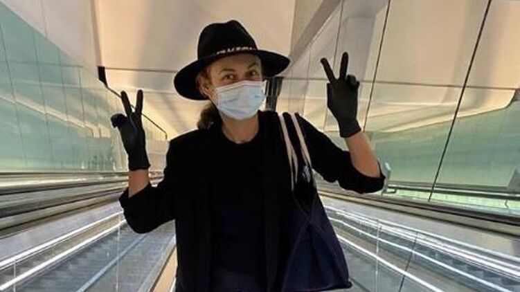 Ольга Куриленко позирует в маске и перчатках. Фото: Instagram