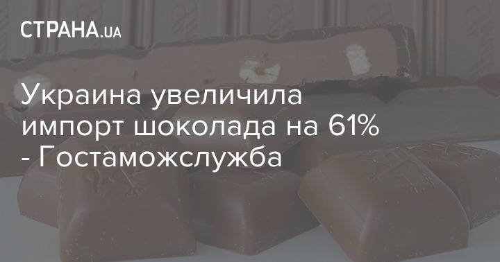 С января по август 2020 года Украина импортировала шоколада в виде плиток или батончиков без начинки на 11,87 млн долларов, что на 61,2% больше, чем за аналогичный период прошлого года.
