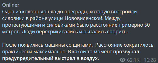 17:18  Издание Onliner пишет, что протестующих у резиденции Лукашенко останавливали выстрелами в воздух.