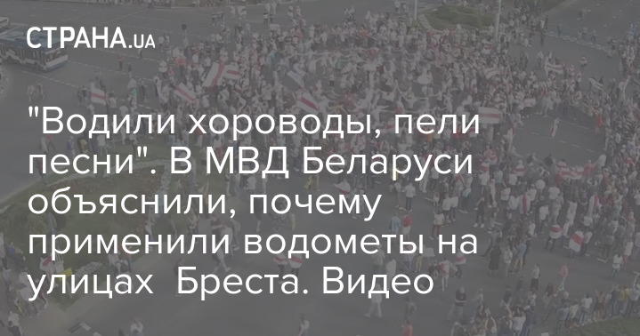 "Водили хороводы, пели песни". В МВД Беларуси объяснили, зачем применили водометы против протестующих в Бресте. Скриншот: МВД Беларуси в Телеграм