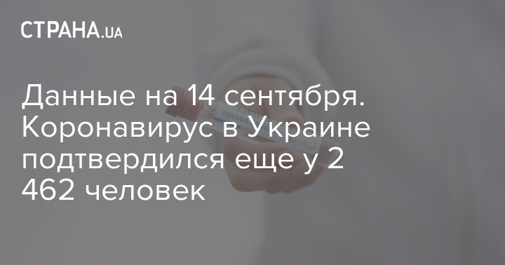 В Украине по состоянию на утро понедельника, 14 сентября, зафиксировано 2 462 новых случая заражения Covid-19.