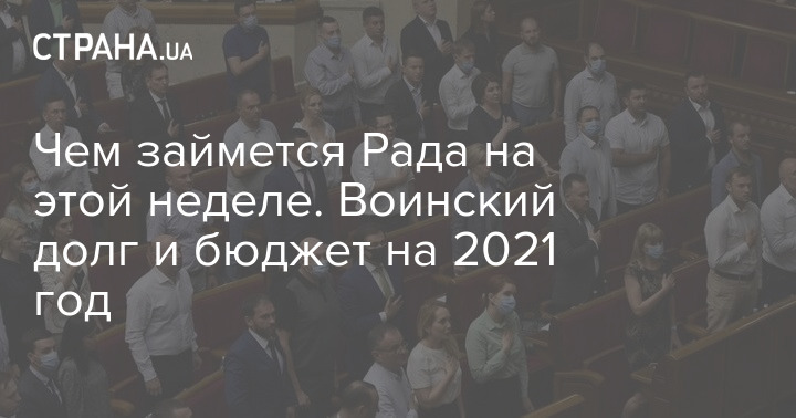 На этой неделе повестка дня депутатов Верховной Рады включает в себя представление проекта закона о государственном бюджете на 2021 год, электронную розничную торговлю лекарственными препаратами, а также государственную поддержку культуры и туризма.