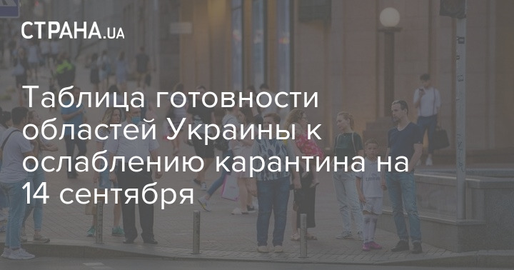 Таблица готовности областей Украины к ослаблению карантина на 14 сентября