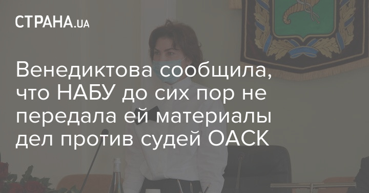 Венедиктова сообщила, что НАБУ до сих пор не передала ей материалы дел против судей ОАСК