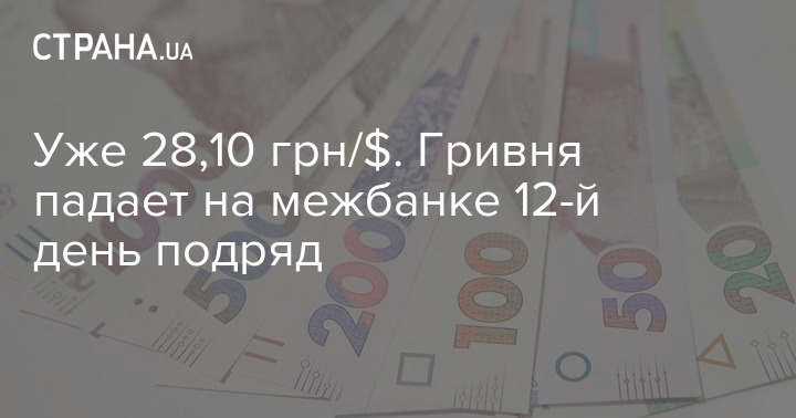Уже 28,10 грн/$. Гривня падает на межбанке 12-й день подряд