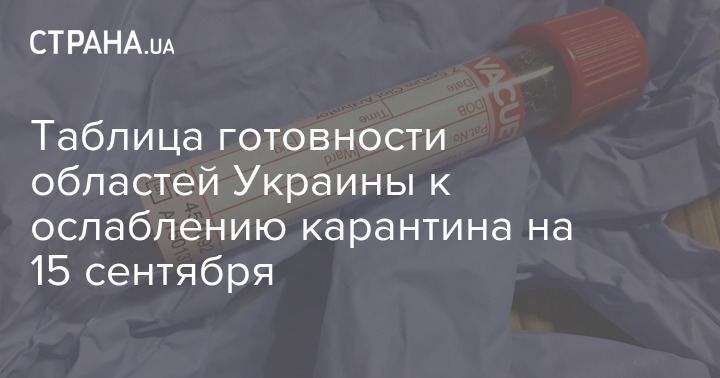 Таблица готовности областей Украины к ослаблению карантина на 15 сентября