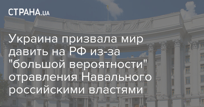 Украина обеспокоена ситуацией вокруг отравления российского оппозиционера Алексея Навального, учитывая "большую вероятность" причастности российских властей к этому преступлению. МИД призвал мир продолжить "скоординированное давление" на РФ.
