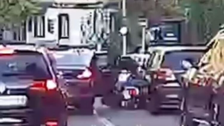 Мотоциклист угодил под внезапно открытую дверь пассажира, фото: скриншот