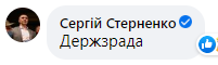 "Госизмена", - кратко отреагировал находящийся под судом за убийство человека националист Сергей Стерненко.