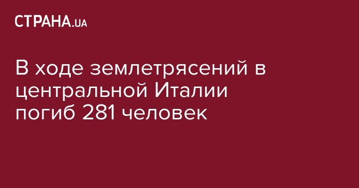 В ходе землетрясений в центральной Италии погиб 281 человек
