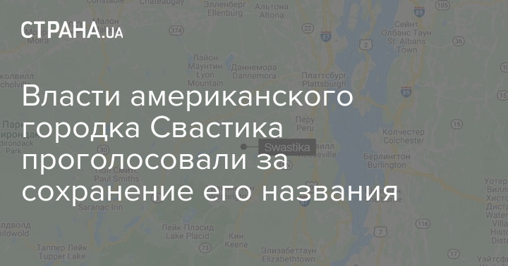Власти небольшого городка в северной части штата Нью-Йорк (США) проголосовали за сохранение его названия Свастика. Он заявили, что основатели города назвали его в честь слова на санскрите, а не нацистского символа.