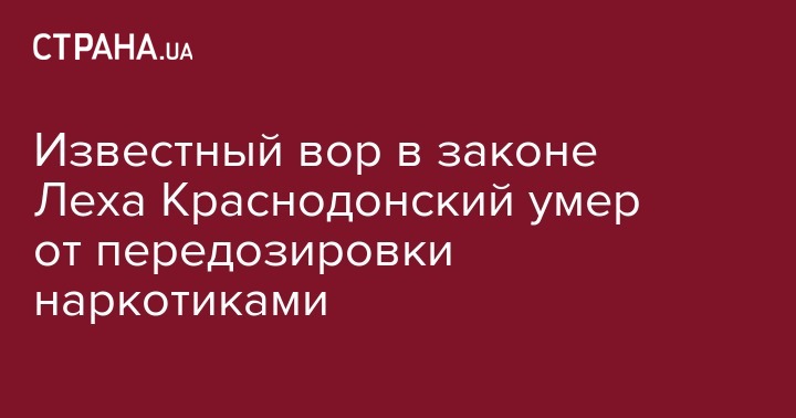 В Черниговской области 25 августа от передозировки наркотиков умер "вор в законе" Алексей Сальников, известный в криминальных кругах как Леха Краснодонский. Об этом сообщил начальник Главного управления Национальной полиции Донецкой области Вячеслав Аброськин на своей странице в Facebook.