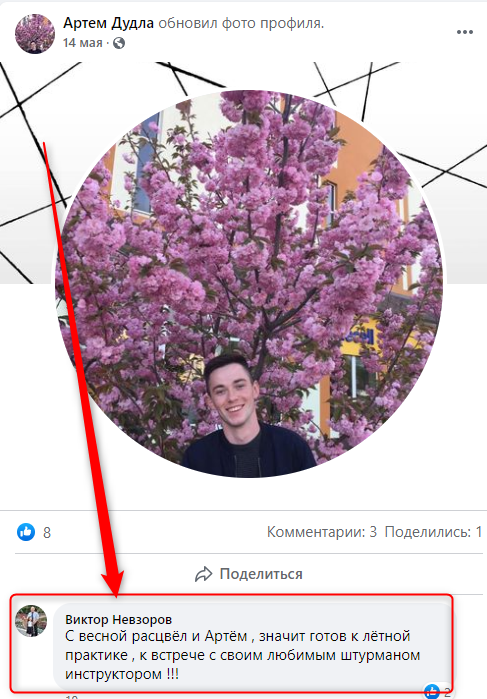 В комментариях его с летной практикой поздравляет Виктор Невзоров - преподаватель вуза и куратор тренировочных полетов на Ан-26Ш, который рухнул вчера.