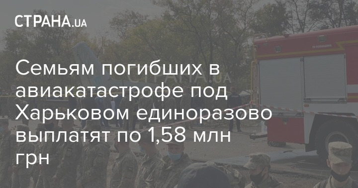 Семьям погибших в авиакатастрофе под Харьковом единоразово выплатят по 1,58 млн грн