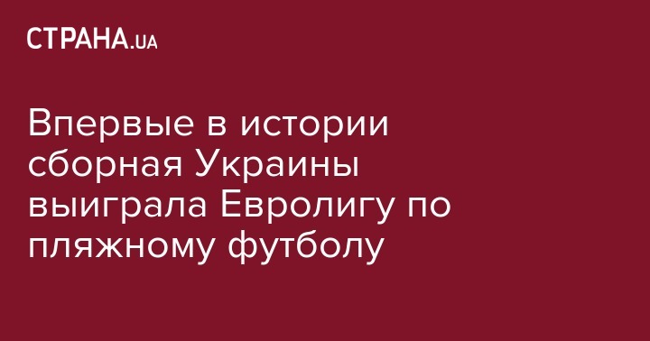 Сборная Украины по пляжному футболу впервые в своей истории стала победителем Евролиги (Euro Beach Soccer League). В суперфинале украинцы обыграли со счетом 2:1 команду Португалии.